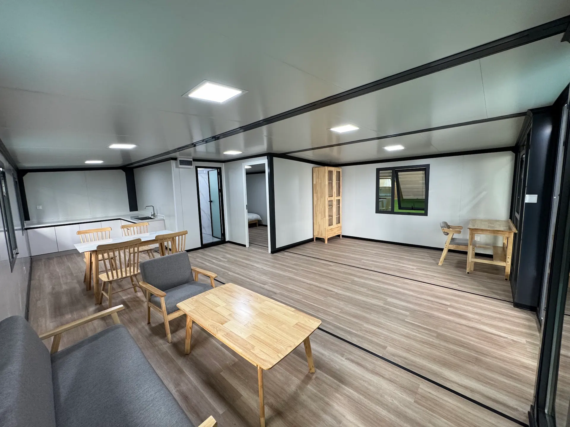 GS Housing Expandable container houses is a movable structure that can be quickly assembled and easily disassembled, suitable for various application scenarios such as house extensions, temporary living, travel vacations, and disaster relief. It is made of a fully galvanized frame and eco-friendly composite materials, featuring characteristics like lightweight, durability, environmental friendliness, and recyclability. The emergence of the double-wing expandable room provides people with flexible living and activity spaces in a short period of time.